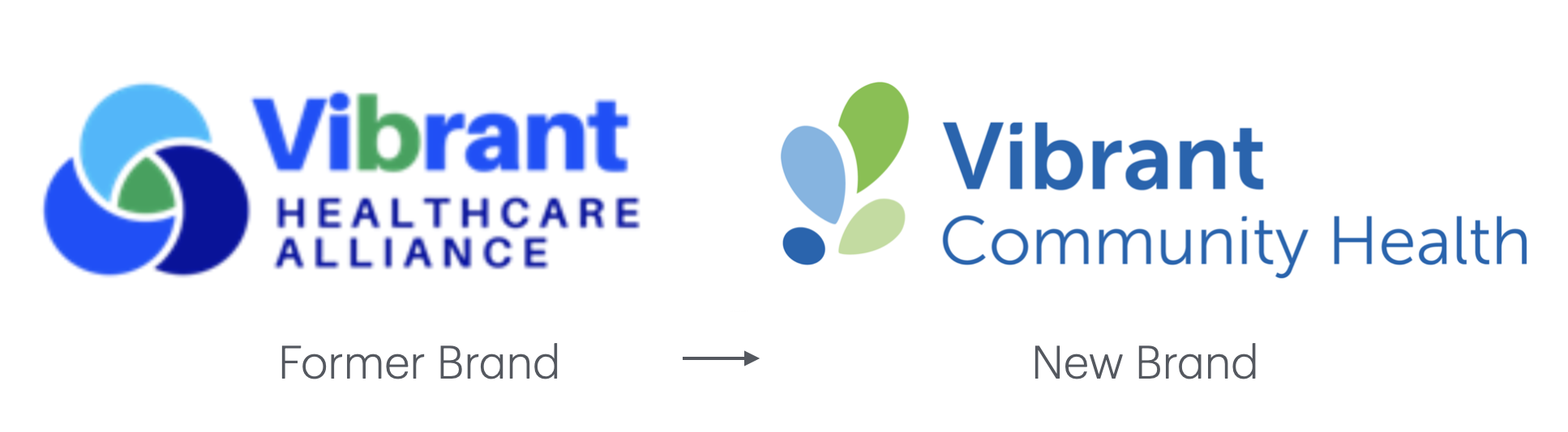 The new Vibrant Community Health logo features shades of blue and green, giving a sense of health, life, inclusivity, and community.